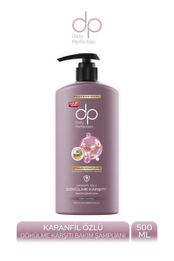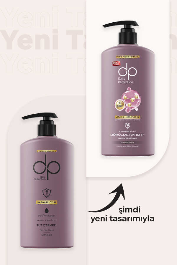 dp Daily Perfection, tuz içermeyen özel formülüyletüm saçlar için geliştirilmiş onarıcı ve besleyici saç bakım şampuanıdır. dp Daily Perfection, içeriğinde karanfil yağı ile saçlarınızı dipten uca güçlendirerek saç dökülmesini engellemeye yardımcı olur. Saç derisindeki gözeneklere ihtiyacı olan vitaminleri sunarak canlı & parlak görünmesini ve daha az kırılmasını sağlar.