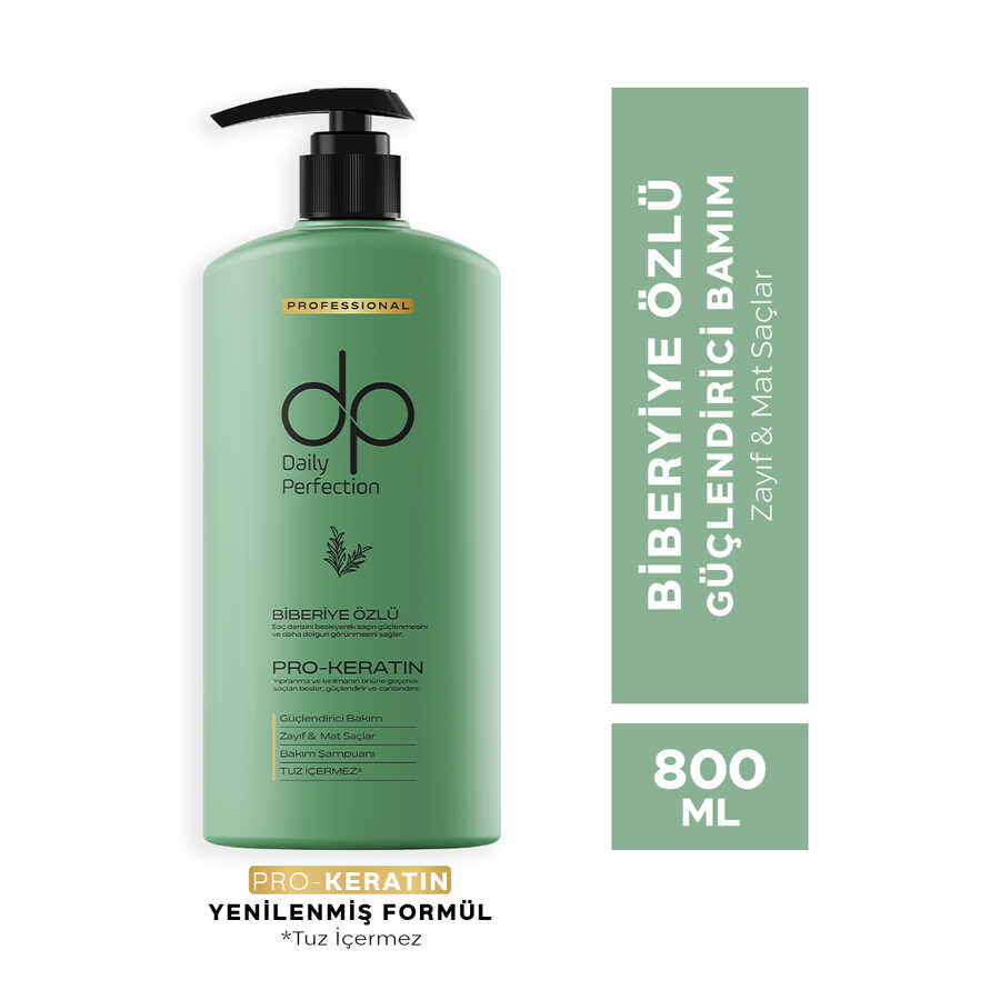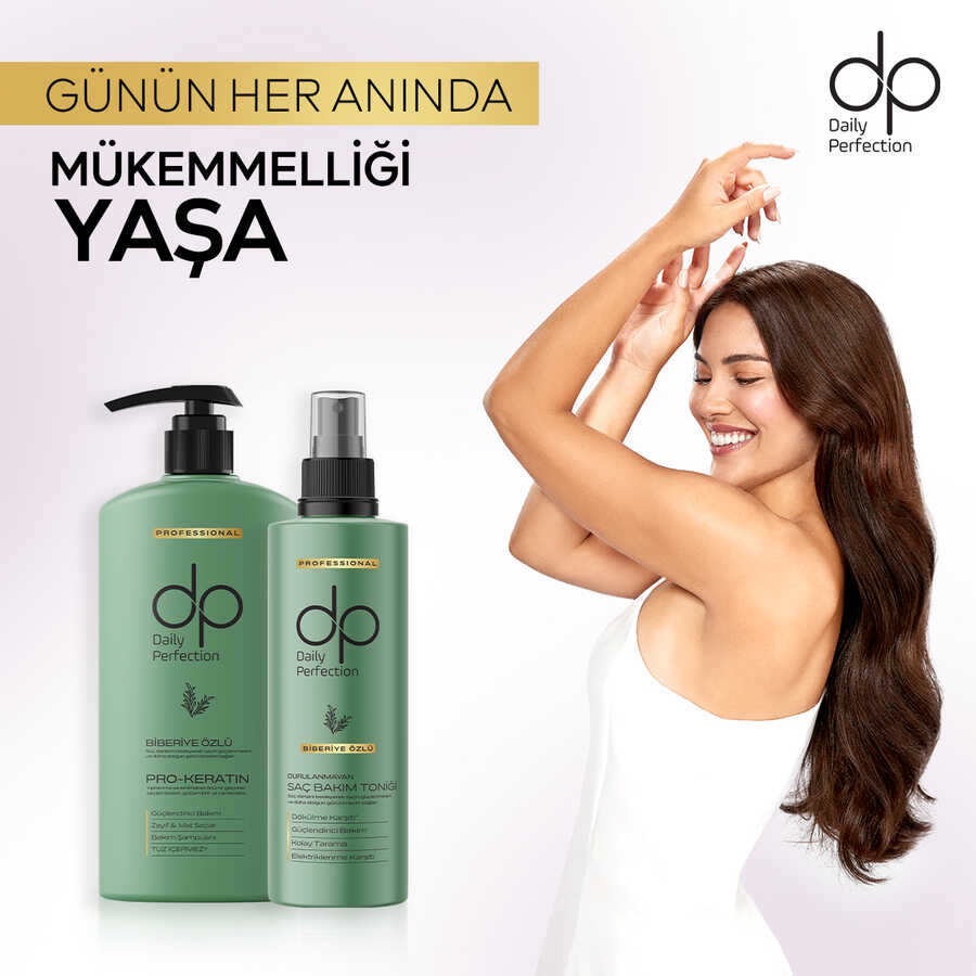 dp Daily Perfection Biberiye Özlü 800 ml şampuanı ve Biberiye Özlü Saç Bakım Toniği 180 ml, sadece online satışa özel bu ekonomik setle saç bakım rutininizi tamamlayın! zayıf ve mat saçlar için geliştirilmiş tuz içermeyen ve PRO-KERATİN özel formülüyle saçlarınızı onarır ve dökülmelerin önüne geçer, saç derisine ve saça yıpratmadan bakım sağlar.dp Daily Perfection Biberiye Özlü PRO-KERATİN şampuanı zenginleştirilmiş formülü sayesinde Biberiye yağı, saç derisini ve saç tellerini besler, dökülmeyi önler. Keratin içeren formül saçlarınızın güçlenmesine yardımcı olur. Saç kırılmalarının önüne geçerek, saçların daha dolgun ve sağlıklı görünmesini sağlar.dp Daily Perfection Biberiye Özlü 180 ml saç bakım toniği zenginleştirilmiş formülü sayesinde saçlarınıza derinlemesine bakım yapar, elektriklenmeyi önler, saçları besler ve saçların doğal nem dengesini korur. Saçı ağırlaştırmaz, ipeksi yumuşaklık ve anında kolay tarama sağlar.Her zaman güçlü, parlak ve canlı saçlara kim sahip olmak istemez? Yeni dp Daily Perfection biberiye özlü serisi ile bu artık mümkün.dp Daily Perfection Biberiye Özlü şampuanı ve Biberiye Özlü Saç Bakım Toniği dökülme önleyici formülüyle her gün sağlıklı ve güçlü saçlara sahip olun!dp Daily Perfection Biberiye Özlü tuzsuz şampuan’ı mutlaka dene, daha güçlü ve parlak saçların için ise Dp Daily Perfection Biberiye Özlü zenginleştirilmiş formülü PRO-KERATİN Bakım setini birlikte kullan!dp Daily Perfection profesyonel saç bakım rutini ile günün her anında mükemmelliği yaşa!ÜRÜN ÖZELLİKLERİBİBERİYE ÖZLÜ | Biberiye yağı saç derisini canlandırarak saç köklerini güçlendirir. Saç tellerini kökten uca besleyerek dökülmeye karşı direncini artırır. Saç kırılmalarının önüne geçerek, saçların daha dolgun ve sağlıklı görünmesini sağlar.KERATİN BAKIM | Keratin içeren özel formülle saçlara ihtiyacı olan vitaminleri kazandırarak bakım yapar. Hasar görmüş saçları onarır, saçların her zaman sağlıklı ve parlak görünmesini sağlar.BİOTİN DESTEĞİ | Biotin desteği zayıf saçları güçlendirerek saç dökülmelerinin önüne geçer. Saç kalitesini artırır ve daha sağlıklı uzamasını sağlar.